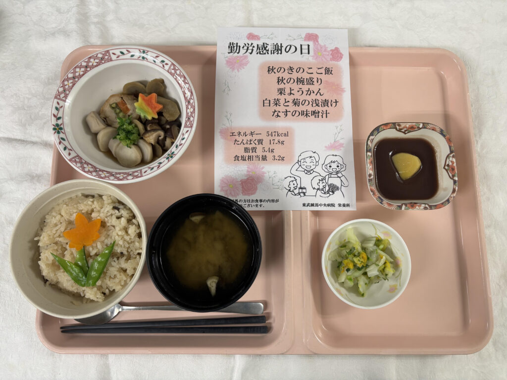 秋の彩りを味わえる季節感たっぷりの献立にしました。